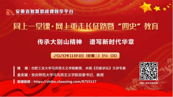 2020年11月4日(星期三)14:00,省委教育工委与广东省教育厅协同开展“网上同上一堂课”活动,这一活动是教育部组织的“网上重走长征路”暨推动“四史”学习教育的重要内容之一,根据省委教育工委相关要求,现将集中观看相关事宜通知如下: