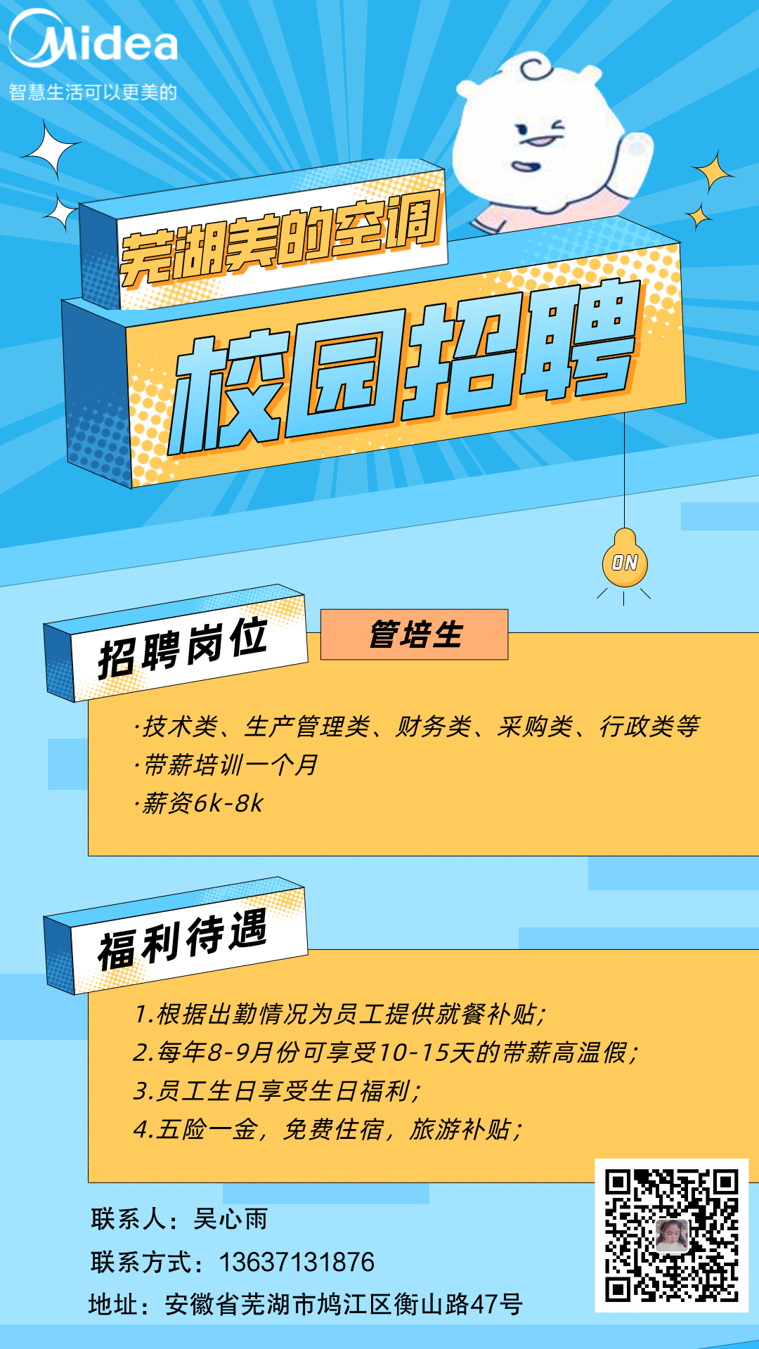 五、简历投递邮箱:wuxy140@midea.com 六、联系方式:吴心雨 13637131876