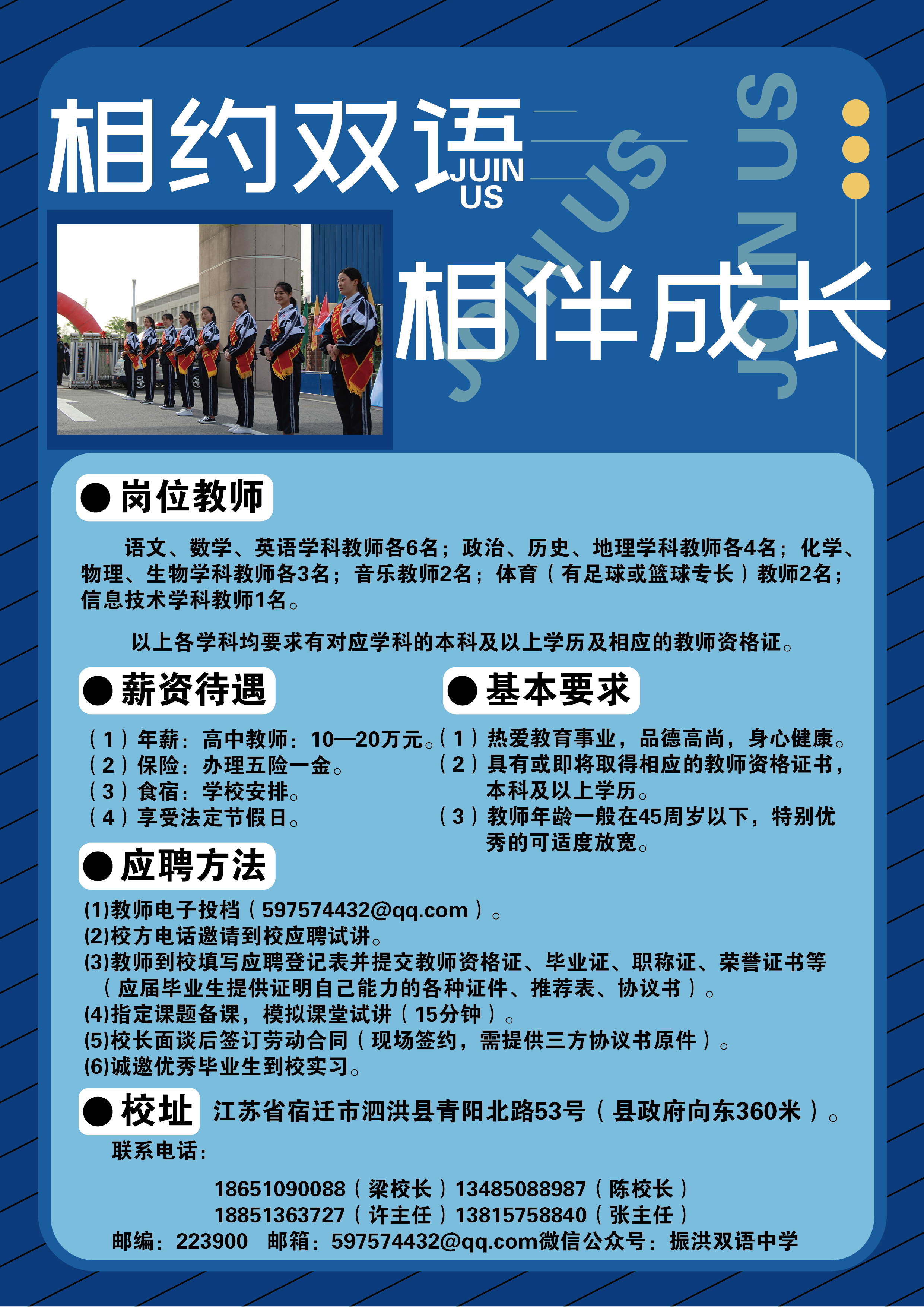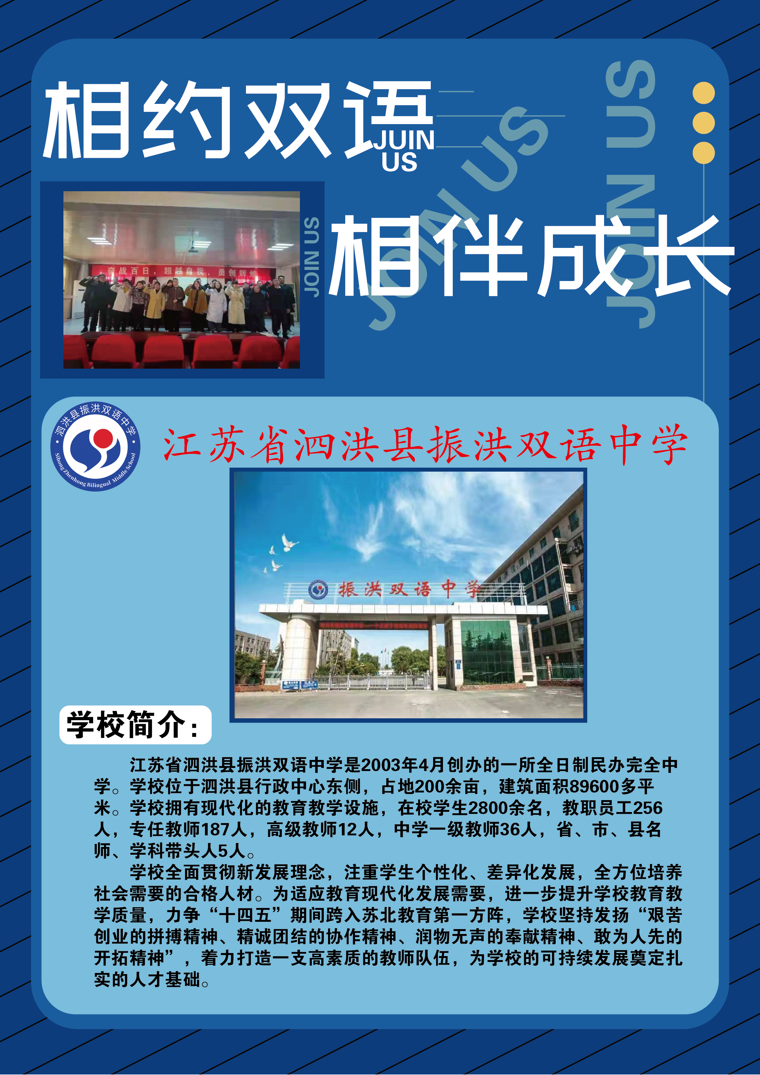 江苏省泗洪县振洪双语中学2022年度教师招聘简章