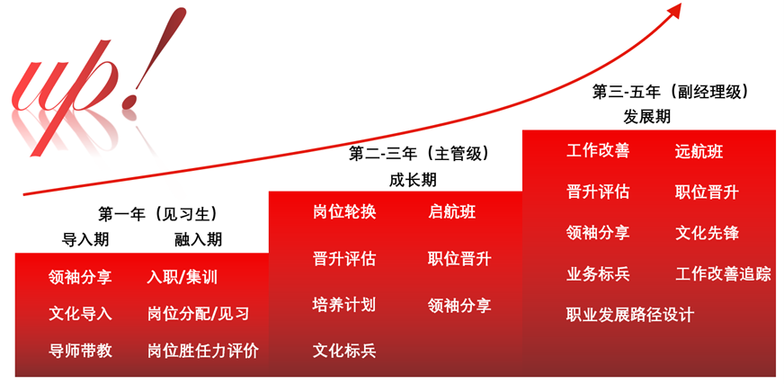 • 多梯次培养:亮剑班、启航班、远航班、领航班、领袖训练营;