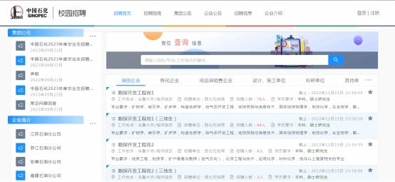 中国石油化工集团有限公司(简称中国石化)是我国特大型石油石化企业集团,公司主营业务涵盖油气勘探开发、炼油生产经营、化工生产经营、产品营销与服务、石油和炼化工程服务、新能源开发利用、国际贸易、资本金融等,连续十年位居《财富》世界500强前五位。真诚欢迎优秀毕业生报考中国石化,共创美好未来!