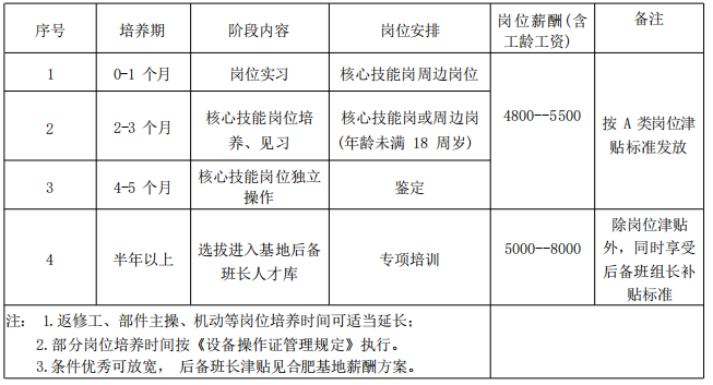 技能通道:操作工→核心技能岗位→初轂工→中级工→高级工→技师
