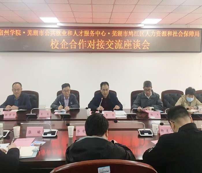 为积极响应和推进访企拓岗专项行动,进一步搭建校企合作交流平台,促进企业用人需求与各学院专业对接,不断提高人才培养的能力和水平,3月8日,我院与芜湖市公共就业和人才服务中心、芜湖市鸠江区人力资源和社会保障局、芜湖市19家企业单位开展校企合作对接交流座谈会。出席本次会议的有芜湖市公共就业和人才服务中心主任毕有勇,芜湖市鸠江区人力资源和社会保障局副局长张璇,芜湖市鸠江区人才交流中心主任朱华朝等,院党委委员、副院长李亮,商学院党委书记肖良、机械与电子工程学院党委书记杨杰、外国语学院党委书记郝景东、数学与统计学院党委书记陈攀峰、招生就业处副处长李金莲、文学与传媒学院党委副书记刘影、信息工程学院党委副书记吴孝银。会议由李亮主持。