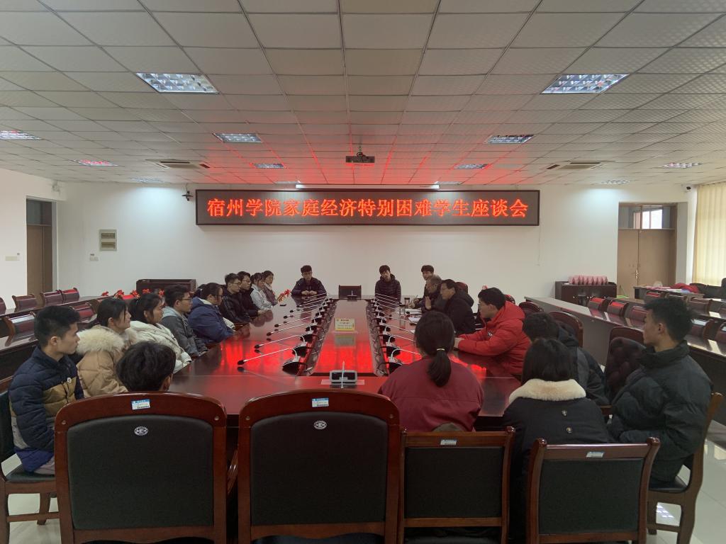 为深入推进我校资助工作开展,1月3日下午,我校在逸夫楼第一会议室召开家庭经济特别困难学生代表座谈会,校团委副书记凌峰、教务处副处长蔡若愚、学生资助科老师及部分家庭经济特困学生参加了座谈会,会议由学生处处长孙增响主持。