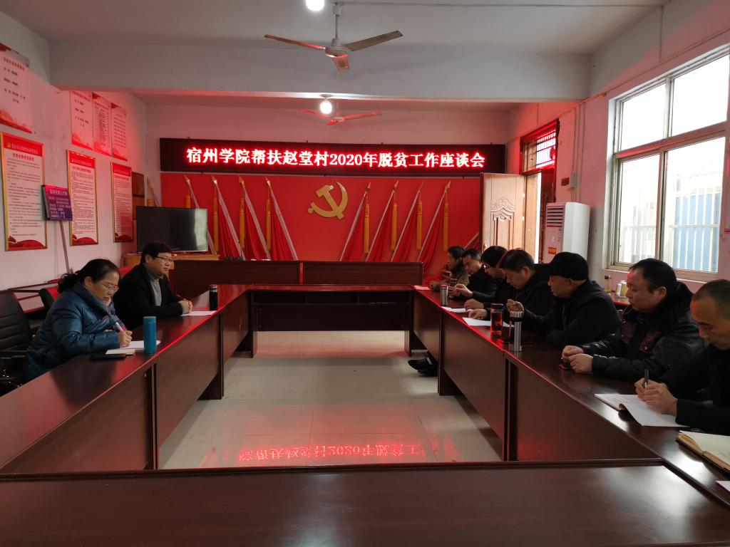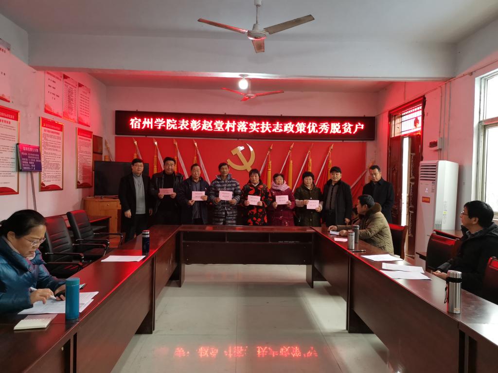 在调研座谈会上,王俊一行分别听取了闫集镇党委书记、镇长卓传旭、赵堂村党总支书记尹超、赵堂村第一书记、驻村扶贫工作队队长黄凯大赢家体育2019年定点帮扶工作总结及2020年脱贫攻坚计划的汇报。会上,闫集镇党委、赵堂村“两委”高度评价和充分肯定了我校驻村帮扶干部做出的贡献,介绍了目前赵堂村精准扶贫工作情况。会上,表彰了赵堂村2019年度落实“双业”脱贫先进贫困户,为20个积极就业户、发展产业户、自主创业户颁发了奖励资金,3名代表围绕产业发展、农户增收等工作进行了汇报交流。