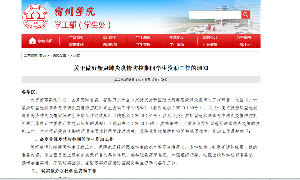 学校通过网络平台向广大学生普及疫情相关知识,帮助学生了解防控知识、提高防范意识,加大对疫情防控期间党和国家最新资助政策的宣传,及时发布学校《大赢家体育做好新冠肺炎疫情防控期间学生资助工作的通知》,有针对性地做好患病家庭经济困难学生及受疫情影响家庭经济困难学生的资助工作。提前发放2020年春季国家助学金,利用校内资助经费向185名特困学生发放疫情防控专项临时困难补助每人1000元,共发放资金18万多元。同时,通过微信、QQ群积极宣传疫情防控期间毕业生助学贷款还款等资助政策;通过“互联网+”的方式开展网络家访,以网络视频、网络电话等形式了解学生学习、生活近况,并致以慰问,传递学校人文关怀。