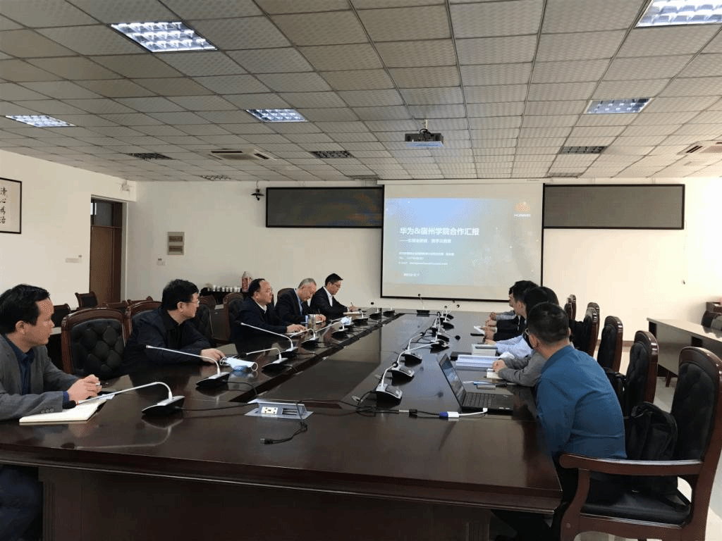 4月26日下午,华为安徽政企业务部副总经理李华强、华为安徽政企业务部宿州区域总经理周佳华、华为安徽教育医疗业务部总经理李威、华为人才生态发展部高级业务代表李俊红等一行6人来我校洽谈专业建设及信息化建设合作。党委书记陈国龙、副校长张英彦、教务处处长孙林华、信息工程学院院长宋启祥、办公室副主任余晓永等参加座谈会,会议由陈国龙主持。
