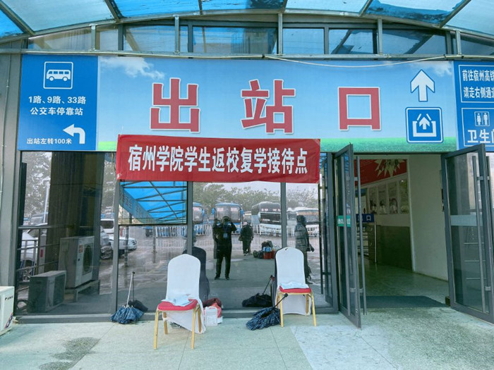 为迎接学生安全返校,学校联合宿州市公交公司在火车站、高铁站,快客站设置了3个接站点,“点对点”接送返校学生直达学校。各站点老师全程引导学生完成消毒、测温、核验信息、登车等各个环节,实现温暖、快速、稳妥入校。