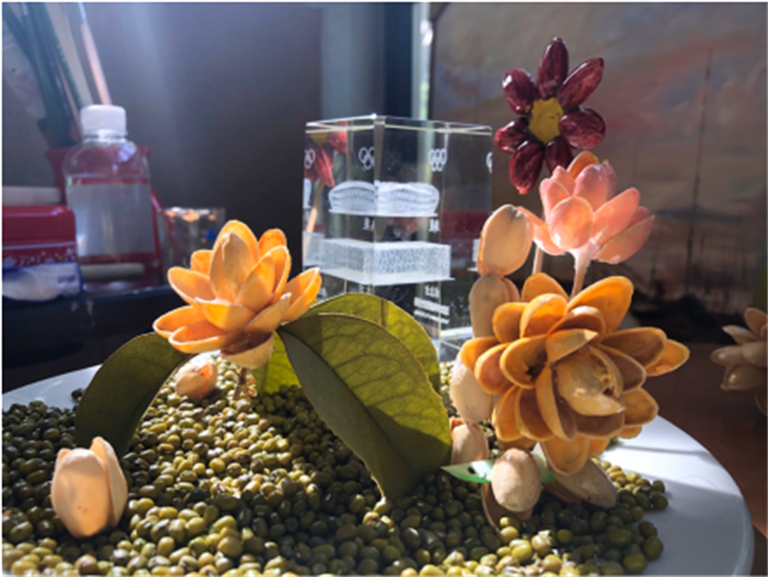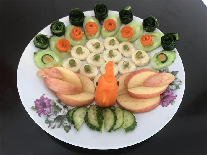 活动期间,参赛选手用身边常见的果蔬食品作为原材料,精心制作成一件件艺术作品。有的同学在材料本身花功夫,用刻刀精细雕琢,使作品显得艺术感十足;有的同学用颜色不同的水果进行摆盘,将色彩的变化展现在作品当中,体现了扎实的美学功底。在征集作品结束后,经过评委们的综合评价,美术与设计学院的《希望》、数学与统计学院的《璀若花火》等10组作品获得大赛一等奖,生物与食品工程学院的《春暖花开》、音乐学院的《豌豆兵》等20组作品获得二等奖,体育学院的《中国加油》、文学与传媒学院的《疫情中的信念》等30组作品获得三等奖。