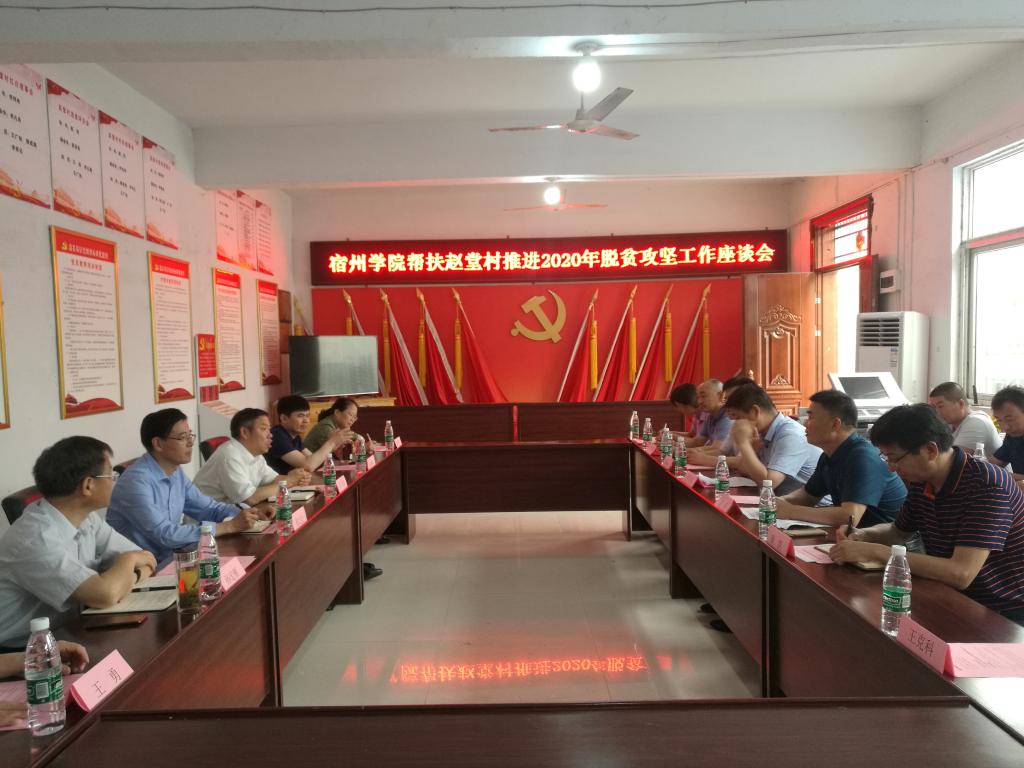 在萧县闫集镇赵堂村扶贫工作调研座谈会上,汪刘送对支持、帮助扶贫工作队开展工作的县、镇、村各级领导表示感谢,充分肯定了工作队的成绩,并向长期坚守在脱贫攻坚第一线的驻村扶贫干部表示慰问。就如何破解村集体经济发展的瓶颈,如何做好脱贫攻坚与乡村振兴有效衔接,如何发挥学校优势强化教育扶贫及扶贫扶智扶志工作,如何开发产业扶贫做好果蔬产品销售工作等,进行了深入的探讨与研究。汪刘送强调,学校将一如既往地全力做好驻村帮扶工作,对症找出巩固脱贫成果的思路、措施,驻村扶贫干部要继续履职尽责,将扶贫工作落细落小落实,坚决打赢脱贫攻坚战。