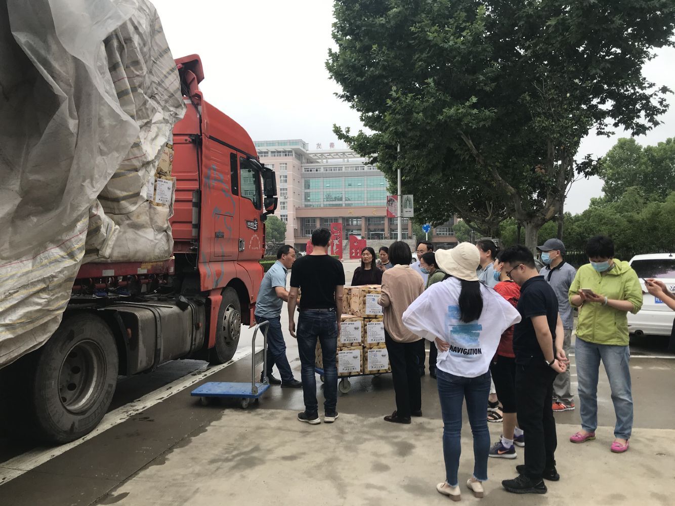 6月22日,阴雨绵绵,东校区校园内已是一派热闹景象,两辆货车满载着爱心消费扶贫物资抵达学校。教职工兴奋的冒雨领取来自皮山县的特色农产品。
