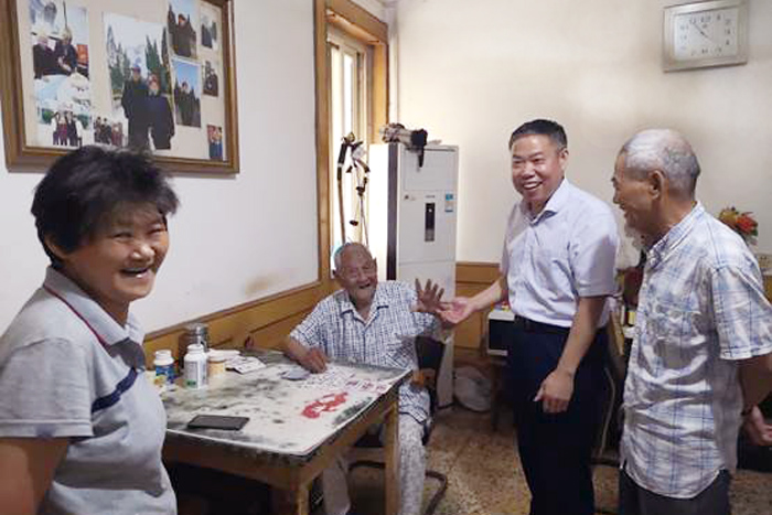 7月3日,校党委书记汪刘送看望慰问我校离休教师、百岁老人倪道明老先生,并为老人送去慰问金和美好的祝福。校党委组织部、校工会(离退休工作处)负责人陪同慰问。