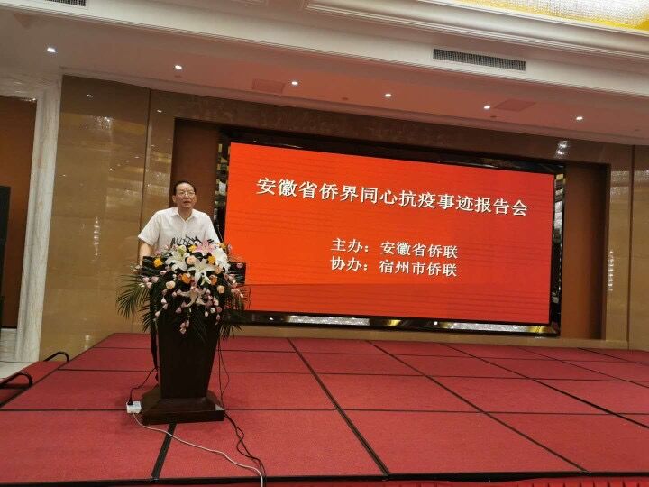 7月14日上午,由安徽省侨联主办、宿州市侨联协办的安徽省侨界同心抗疫事迹报告会在宿州市举行。安徽省侨联党组书记、主席李世蕴,省侨联党组成员、副秘书长、办公室主任毕清,宿州市委常委、市委秘书长孟伟,市外事办副主任、侨联副主席薛林海出席了报告会。孟伟在报告会上致欢迎辞,李世蕴在报告会上致辞,毕清主持报告会。大赢家体育侨联应邀派20名代表参会。