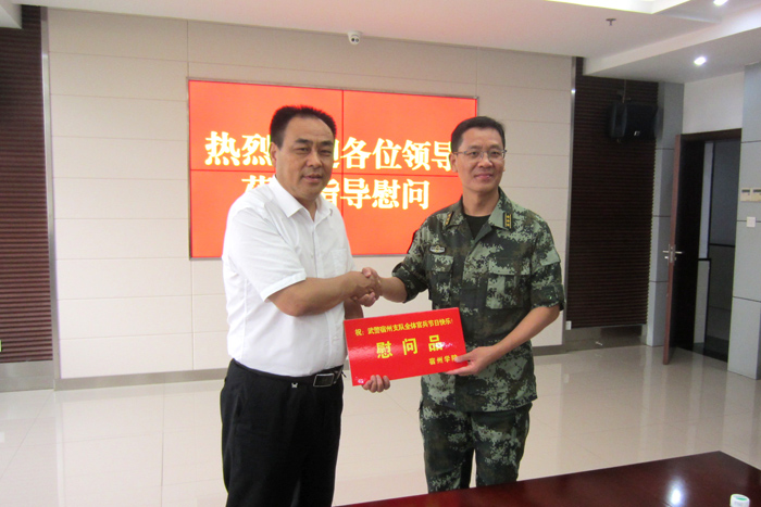 在建军九十三周年即将来临之际,我校党委委员、副校长、双拥工作领导小组副组长李亮带队于7月28日前往宿州市埇桥区武装部、宿州市消防救援支队、武警宿州支队开展走访慰问活动,代表全校师生向部队官兵表达节日祝愿并赠送慰问品。
