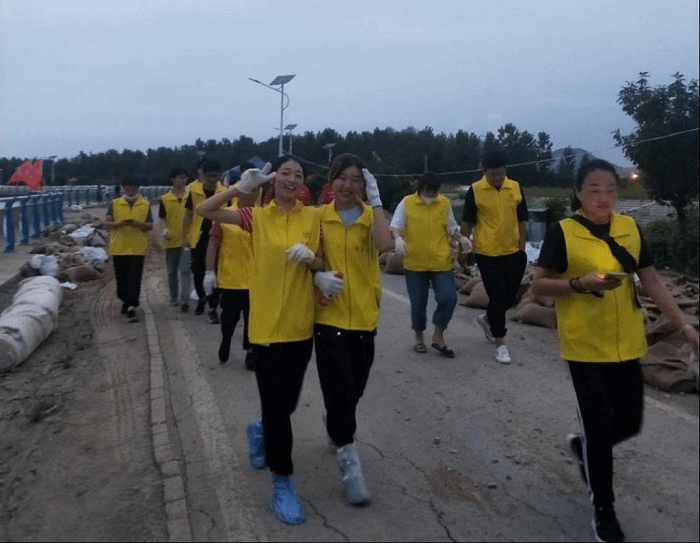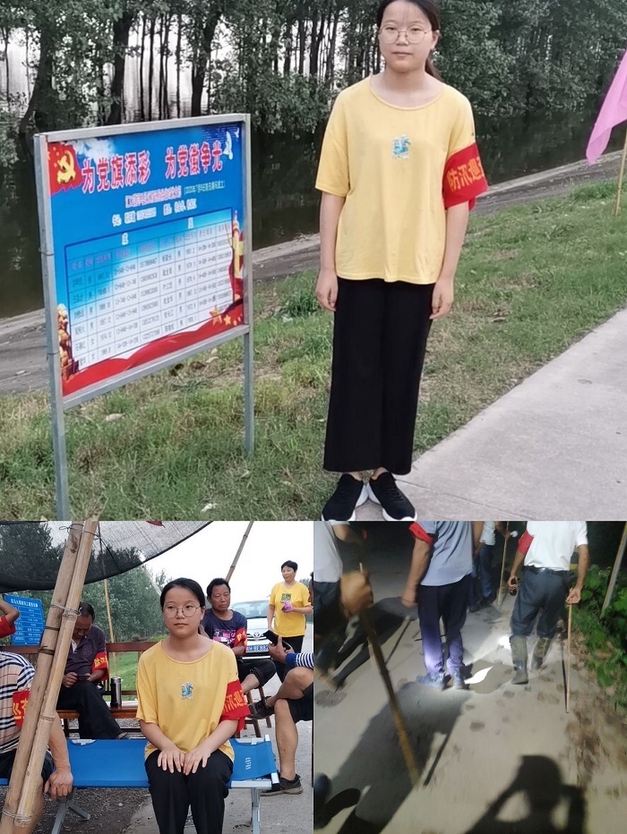 美术与设计学院书法视传学生党支部发展对象、美术学专业班长任静静积极响应校党委、当地政府抗洪抢险号召,与当地党员干部、志愿者迅速投入到抗洪抢险第一线。