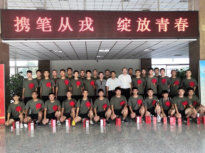 会后,学校向应征入伍的同学们赠送了纪念礼物并合影留念。