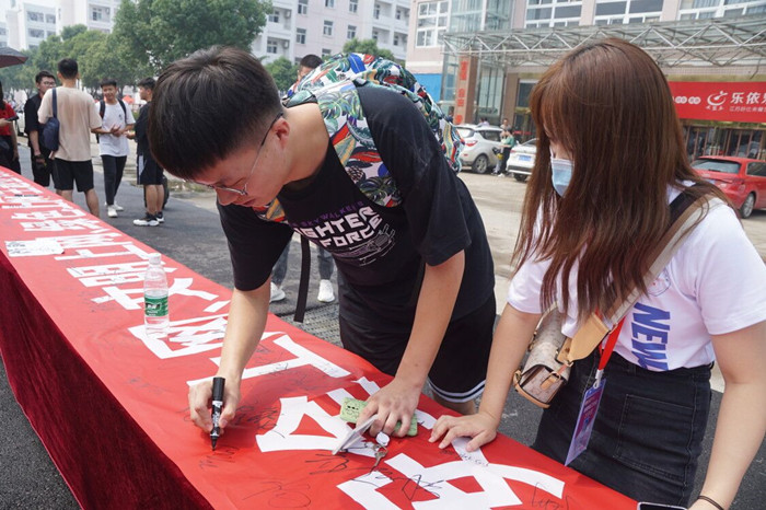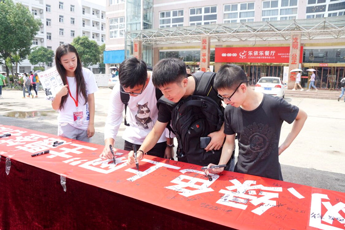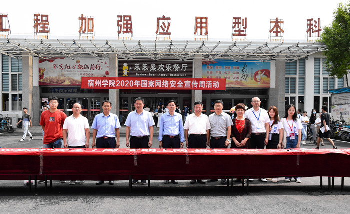 9月14日至9月20日是国家网络安全宣传周,为进一步推动我校网络信息安全建设,加强网络信息安全教育宣传,营造安全、健康、文明、和谐的网络环境,由校党委宣传部主办的2020年网络安全宣传周主题签名活动在二食堂门口举办,校党委书记汪刘送,党委副书记蔡之让,纪委书记、监察专员王俊,宣传部部长李真、办公室主任李高、学生处处长孙增响、团委副书记凌峰、宣传部副部长王金岭及500余名学生参加了此次活动。