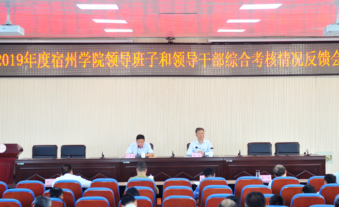 杨兵代表省委考核组反馈了我校综合考核情况,宣布学校在2019年度省委综合考核中为“良好”等次。考核组认为,2019年学校领导班子认真学习宣传贯彻习近平新时代中国特色社会主义思想,积极贯彻落实党中央、省委重大决策部署,始终与以习近平同志为核心的党中央保持高度一致。班子对标新要求,抢抓新机遇,不断丰富办学内涵,提升办学质量,彰显办学特色,人才培养、科学研究、社会服务和文化传承等工作取得较好成效。坚持落实党建工作责任制,积极推动党建与教学、科研、管理等业务工作融合,同向发力、共同进步。