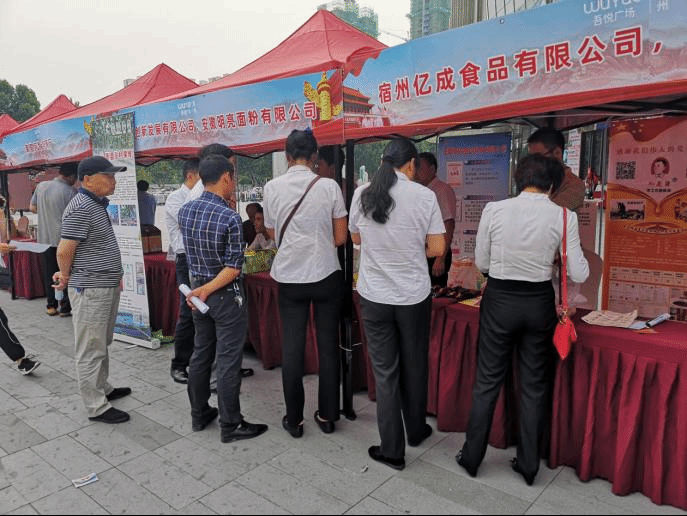 展销会上,我市各县、区展台上面粉、杂粮、蔬菜、水果、干货等种类繁多、质优价廉的各类农副产品应有尽有,充分展现了宿州市作为农业大市的农产品优势和产业扶贫成果。