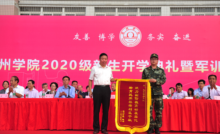 汪刘送代表学校欢迎来自全国13个省市的4900多名新同学,对在军训中获得的先进集体和先进个人表示祝贺。汪刘送指出,2020年,是一个不同寻常的年份。以习近平同志为核心的党中央坚持人民至上、生命至上,团结带领全党全国各族人员众志成城、共克时艰,谱写了抗击疫情的伟大篇章,取得了抗击疫情的决定性胜利,彰显了中国特色社会主义制度的优越性,也才有了我们今天的相识相聚。线上学习,高考延期,同学们在担当中历练、在尽责中成长。同学们经受了疫情和升学的双重考验,以足够的勇气、才智与信心出色战胜了高考挑战,交出了人生旅程中又一份合格答卷。进入大赢家体育后,同学们立即投入到军训中,遵守纪律,服从命令,听从指挥,敢于吃苦,挑战自我,以出色的成绩向“大学第一课”交上一份圆满的答卷。通过军训,同学们的思想觉悟、身体素质、意志情操、国防意识、团结协作等方面的素质都得到了提高。