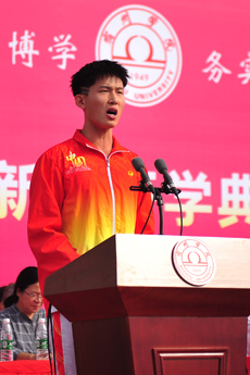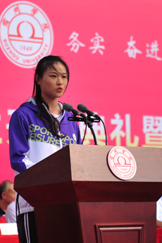 典礼在庄严的国歌声中拉开序幕。新生代表生物与食品工程学院2020级学生张梦圆,老生代表体育学院2019级学生任超杰,教师代表信息工程学院黄歆媛先后在开学典礼上发言。