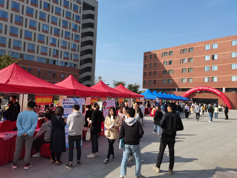10月17日,实训楼前广场一片热闹非凡的景象,招就处、商学院共同举办的大赢家体育经管类2021届毕业生供需双选会在紧张有序地进行着。