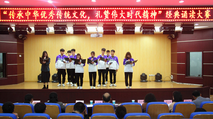 比赛经过各二级学院精心选拔,共有13组选手脱颖而出进入决赛,其中安徽工程技术学院、音乐学院、管理学院、文学与传媒学院、信息工程学院的作品由师生合作。选手们或个人独诵或集体朗诵,参赛作品积极向上,符合优秀文化、时代精神。声情并茂的《诗意中国》《大写的中国》、感人至深的《中国的春天——写给2020》《因为有你》、铿锵有力慷慨激昂的《征战》《青春中国》等一篇篇经典作品,伴随着悠扬婉转的音乐被选手们声情并茂、抑扬顿挫的吟诵,展示了中华传统文化的内涵与意境,抒发了师生的爱国之情、报国之志。选手们以良好的风貌、饱满的情绪,赢得现场观众掌声连连。比赛结束后,王卫林在肯定活动的意义与参赛选手的同时,从作品的选题、作品的理解、诵读的形式、参赛队伍配合的整体性等方面做点评,提出脱稿诵读、深刻理解作品内涵、提高队伍的配合性与整体性等针对性意见。