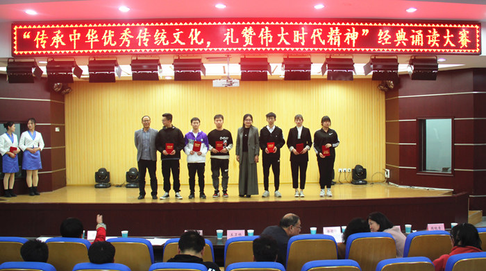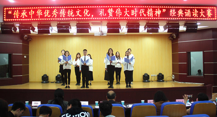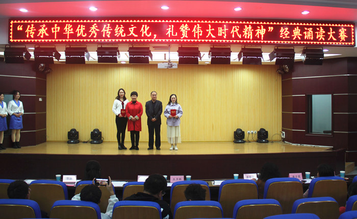 为进一步传承和弘扬中华优秀传统文化,引导和激励师生传承爱国奋斗精神,抒发家国情怀,助力打赢疫情防控阻击战和脱贫攻坚战,歌颂社会主义现代化建设取得的辉煌成就,11月4日下午,我校在招聘大厅举办“传承中华优秀文化,礼赞伟大时代精神”经典诵读比赛。发展规划处处长王卫林、质评处处长唐爱华、文学与传媒学院院长蒋宗霞、文学与传媒学院党总支书记李月云、教师周艳青担任比赛评委。比赛由校党委宣传部、团委、教务处主办,文学与传媒学院承办。