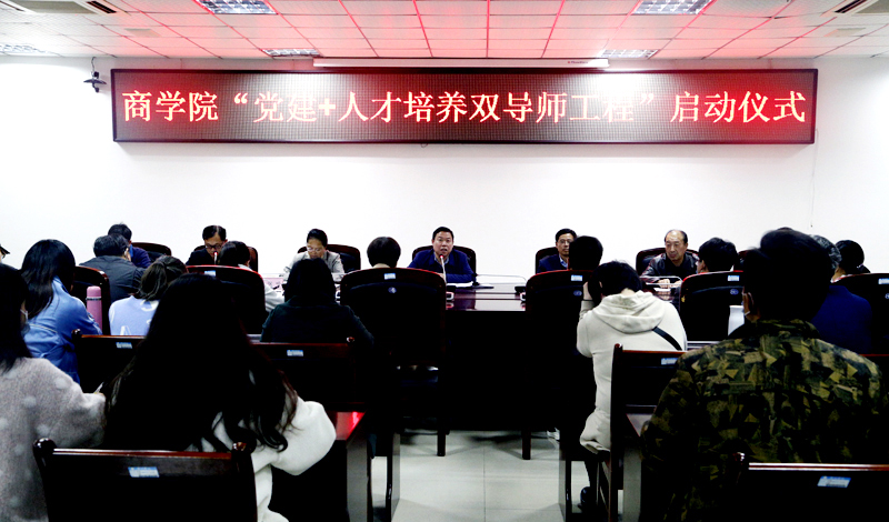 会上,商学院院长徐公伟宣读了《党建+人才培养双导师工程实施方案》,教师一支部书记、财管会计教研室主任宁青青老师发言。