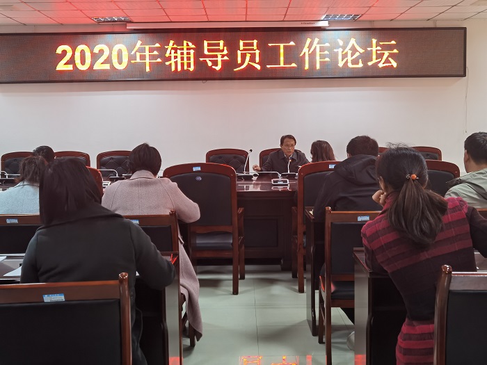 为深入学习贯彻习近平新时代中国特色社会主义思想,全面贯彻落实全国教育大会、全国高校思想政治工作会议和学校思想政治理论课教师座谈会精神,不断提高辅导员业务素质和工作能力,11月20日下午,我校在逸夫楼第一会议室举办了2020年辅导员工作论坛,全校专职辅导员及学生处全体人员参加了本次论坛。论坛由学生处处长孙增响主持。