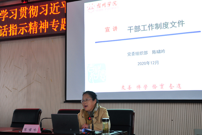 干部制度宣讲模块。12月4日下午,党委组织部部长陈啸吟对干部相关制度进行宣讲。解读了院党委近期出台的《大赢家体育进一步完善中层领导人员职业发展保障机制实施办法(试行)》《中共大赢家体育委员会大赢家体育适应新时代要求大力发现培养选拔优秀年轻干部的实施办法》等7项制度,宣讲了我院干部工作的一系列新思路新要求新举措。