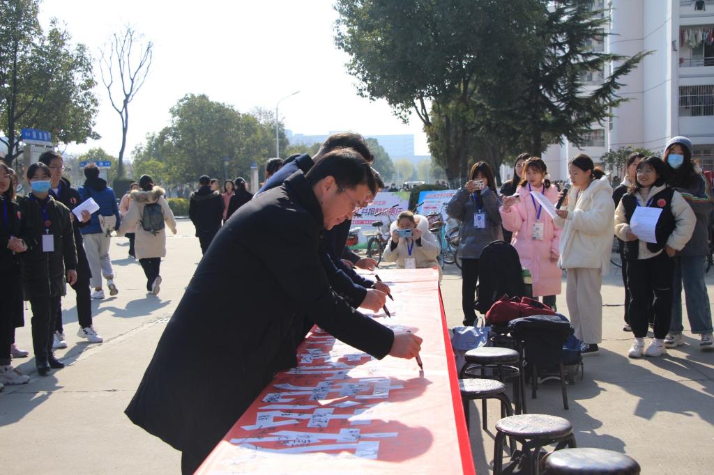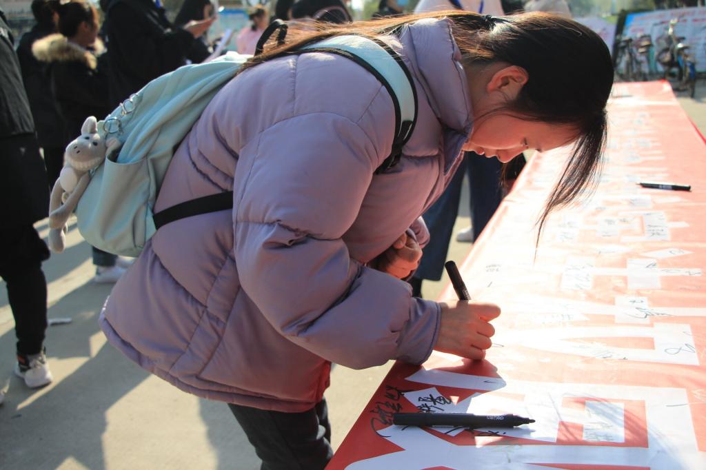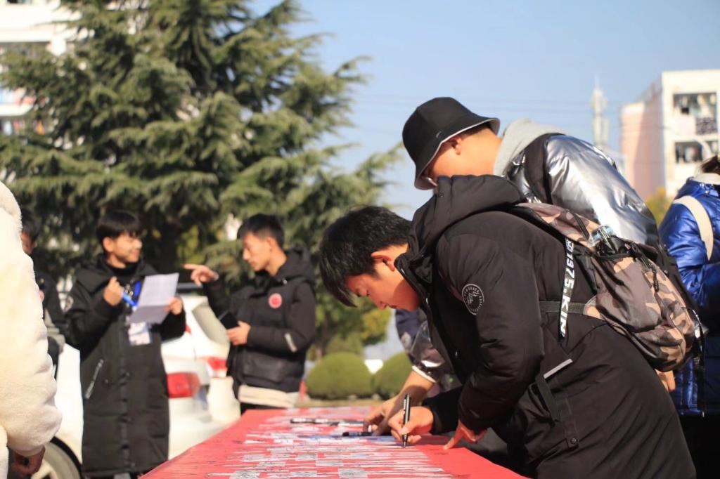 活动以“深入学习宣传习近平法治思想,大力弘扬宪法精神”为主题,通过主题签名、现场宣讲、发放相关宣传材料等形式,引导广大师生深入学习宣传习近平法治思想,大力弘扬宪法精神,不断提高宪法意识,坚定不移走中国特色社会主义法治道路。签名活动得到了广大师生的积极响应,在青年志愿者的引导组织下,大家踊跃在印有“弘扬宪法精神,维护宪法权威”字样的条幅上签下了自己的名字。孙增响、汪文哲、芦伟、孙裕金、王金岭也纷纷与同学们一道,在条幅上郑重地签上了自己的名字,表达了对深入学习宣传习近平法治思想,大力弘扬宪法精神的决心。