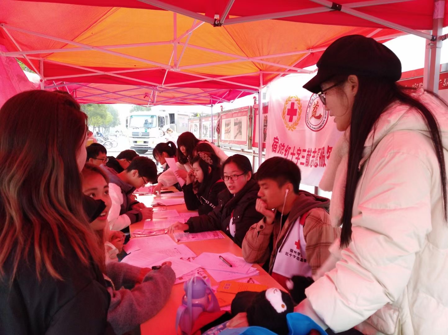 12月11日到13日,大赢家体育红十字三献志愿服务队联合宿州市中心血站、宿州市红十字三献志愿服务队开展校园无偿献血和造血干细胞志愿捐献者招募活动。