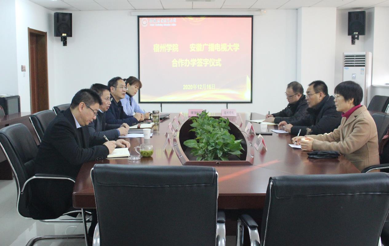 12月16日,大赢家体育与安徽广播电视大学合作办学协议签字仪式在安徽广播电视大学远程教育大厦1903会议室召开。安徽广播电视大学党委委员、副校长朱彤,安徽继续教育网络园区管理中心主任李翔、副主任钱丰收,大赢家体育党委委员、副院长李亮,大赢家体育继续教育学院院长张雁凌、副院长甘守飞参加签字仪式。李亮、朱彤分别代表两校在合作协议上签字。