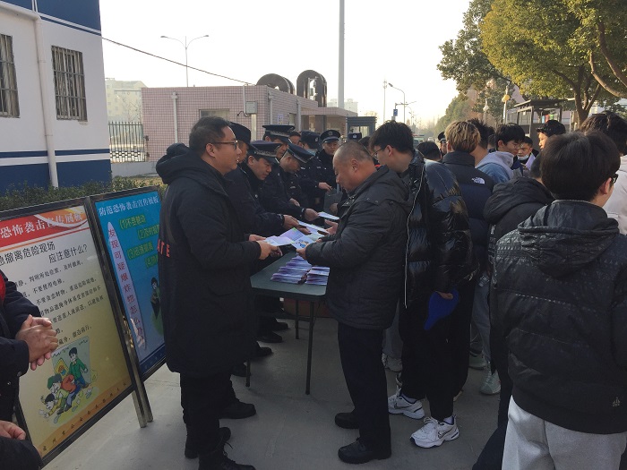 12月23日上午,宿州市公安局联合我院开展反恐防暴宣传教育活动,院党委委员、副院长李亮,宿州市公安局反恐支队、宿州市公安局国保大队等相关部门及院保卫处负责人等参与活动。