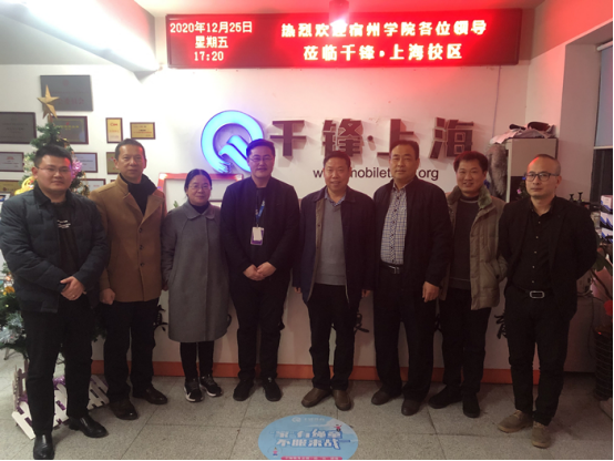 为精准把握市场需求导向,推动校企合作、产教融合精准发力,调整人才培养思路,促进人才培养转型,提升毕业生就业质量,12月25日至26日,由招生就业处牵头组织,院党委书记汪刘送,院党委委员、副院长李亮,招生就业处处长杨刚,信息工程学院书记路红梅,招生就业处副处长王北阳,信息工程学院党务秘书张万礼,一行六人赴上海考察就业市场并看望在企业实习就业的学生。两天先后走访了北京千锋互联有限公司——上海校区、上海传智播客教育科技有限公司2家企业,探讨建立新形势下的校企合作关系。期间看望了2021届实习实训学生、回访了毕业生。