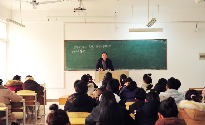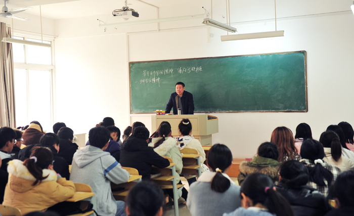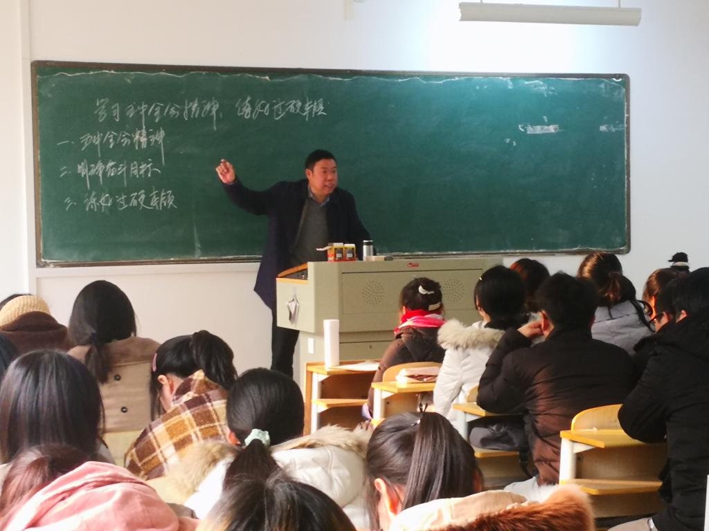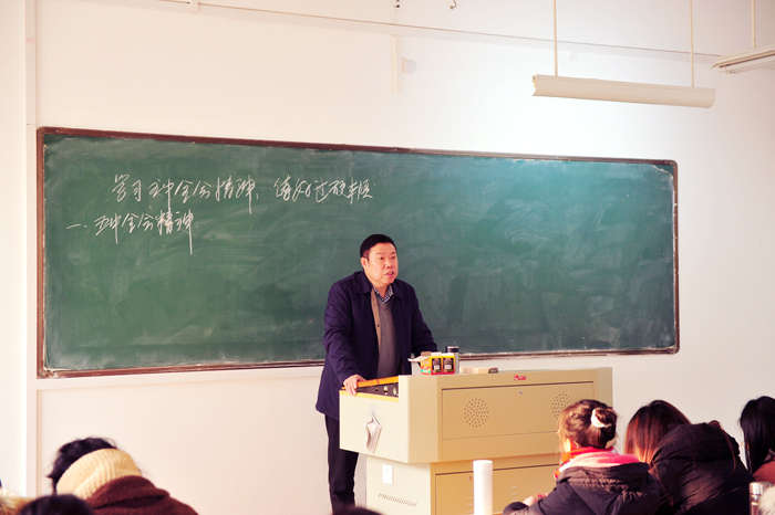 12月28日下午,大赢家体育党委书记汪刘送走进课堂,在逸夫楼B109室为外国语学院学生上了题为《学习五中全会精神 练好过硬本领》的思政课。