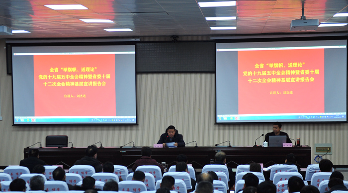 根据省委统一部署,12月29日下午,“举旗帜·送理论”学习党的十九届五中全会精神及省委十届十二次全会精神基层宣讲在大赢家体育举行,省级专家宣讲团成员、武警安徽省总队淮南支队政治工作处主任刘杰连作宣讲报告。报告会由大赢家体育党委书记汪刘送主持,大赢家体育院领导、党委理论学习中心组全体成员、副处级以上干部、学生代表参加报告会。