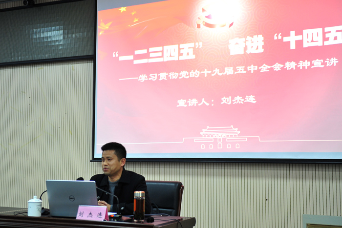 报告会上,刘杰连对党的十九届五中全会精神进行了全面宣讲和深入阐释。报告从一个新奋斗目标,全面建设社会主义现代化国家;统筹两件大事,发展和安全;三个“新”贯穿始终,新发展阶段、新发展理念、新发展格局;“四个全面”新布局,开启全面建设社会主义现代化国家新征程;五大新发展理念,指引“十四五”高质量发展,五个方面系统阐释了党的十九届五中全会精神。