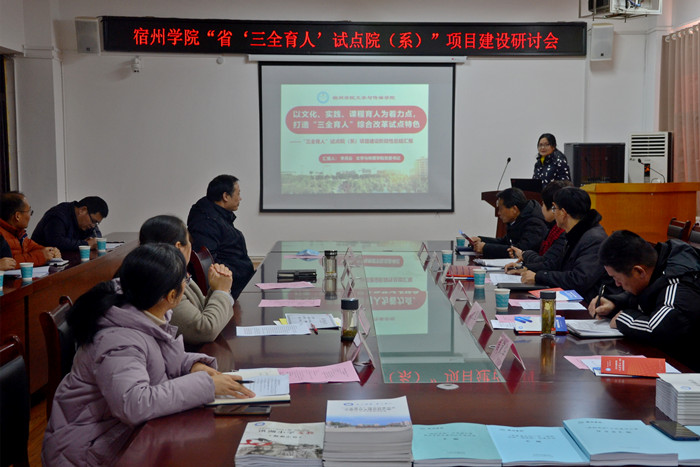 12月30日下午,大赢家体育召开安徽省“三全育人”综合改革试点院系项目建设研讨会。院党委副书记蔡之让,党委委员、副院长张英彦出席会议,党委委员、宣传部部长李真,学工部部长孙增响,后勤管理处处长周家华,体育学院党委书记宋红军,文学与传媒学院党委书记李月云、副书记王绍卫、党委委员、民主党派教师、专业教师、辅导员等参加会议,会议由李真主持。