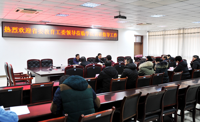 1月7日上午,省委教育工委副书记、省教育厅机关党委书记王佩刚来我院调研指导工作,省教育厅人事处处长程宗林陪同调研。全体院领导及组织部、宣传部、人事处、学工部等9个职能部门负责人参加调研座谈会。