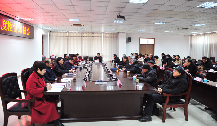 1月20日上午,我院在逸夫楼第一会议室召开2020年度校情通报会。院党委书记汪刘送,党委副书记、院长张莉,党委副书记蔡之让,党委委员、副院长李亮、梁琦、张英彦,党委委员、纪委书记、监察专员王俊出席会议。组织部、宣传部、党政办、人事处、工会、教务处、基建处、财务处、后勤管理处、科技处、保卫处负责同志,离退休老干部、老同志代表,各民主党派人士代表,侨联会员代表,知联会会员代表等参加会议。会议由汪刘送主持。