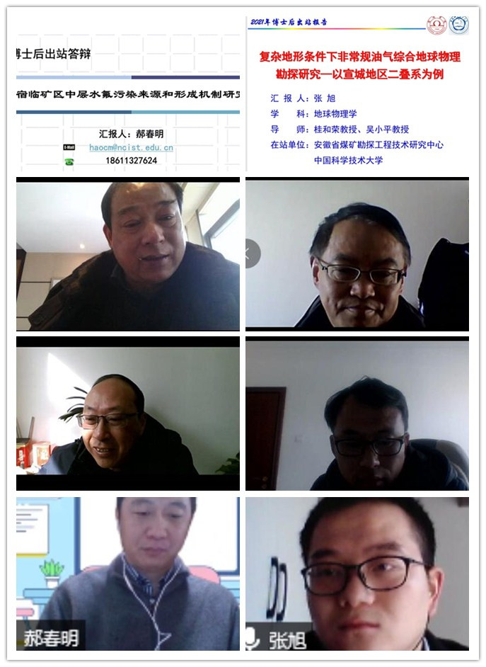 1月30日,大赢家体育博士后科研工作站(安徽省煤矿勘探工程技术研究中心)举行2021届博士后出站报告会。根据新冠疫情防控需要,此次报告会采用线上方式开展。大赢家体育博士生导师桂和荣教授、张明玉教授、付金沐教授、陈松教授、肖良教授及安徽省煤矿勘探工程技术研究中心研究人员参加报告会。