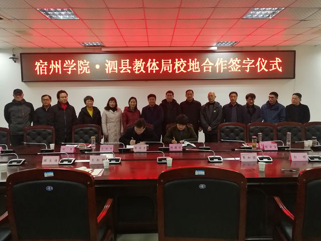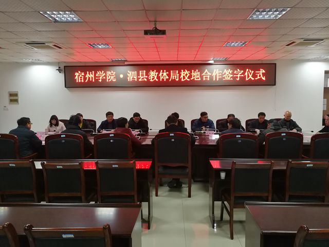 2月4日上午,我院与泗县教体局校地合作共建教育实习基地签字仪式在我院教育园校区逸夫楼第一会议室举行。泗县教体局副局长杨蕴昕、教体局人事科科长姜成林和泗县城区各中小学校长、幼儿园园长等参加了签约仪式,我院参加签约仪式的有副院长张英彦、教务处处长王红艳、外国语学院院长李加强、音乐学院院长顾大海、体育学院副院长白明、商学院党委书记岳尧等。签约仪式由王红艳主持。