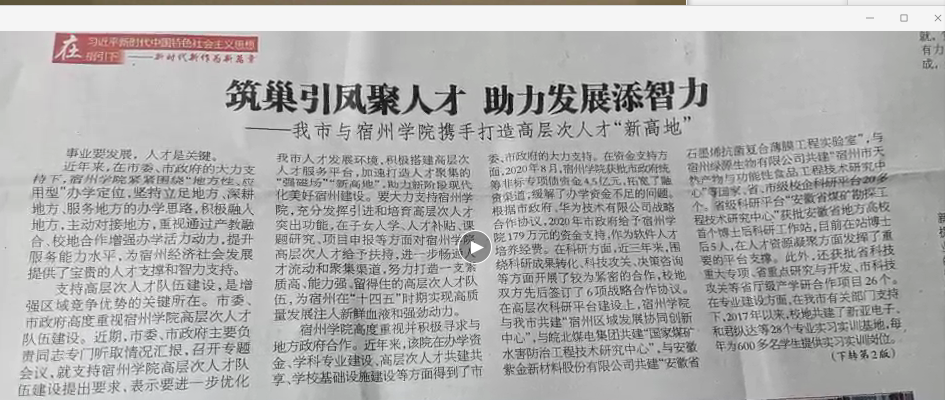 3月1日,《拂晓报》以《筑巢引凤聚人才助力发展添智力——我市与大赢家体育携手打造高层次人才“新高地”》为题,报道了宿州市与我院携手打造高层次人才“新高地”。