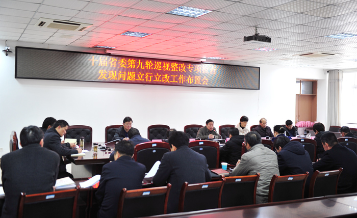 3月9日上午,我院在逸夫楼第一会议室召开十届省委第九轮巡视整改专项检查发现问题立行立改工作布置会,校领导、各相关职能部门主要负责人、二级学院党委(党总支)书记,院巡视整改领导小组办公室成员参加会议。会议由院党委书记、巡视整改工作领导小组组长汪刘送主持。