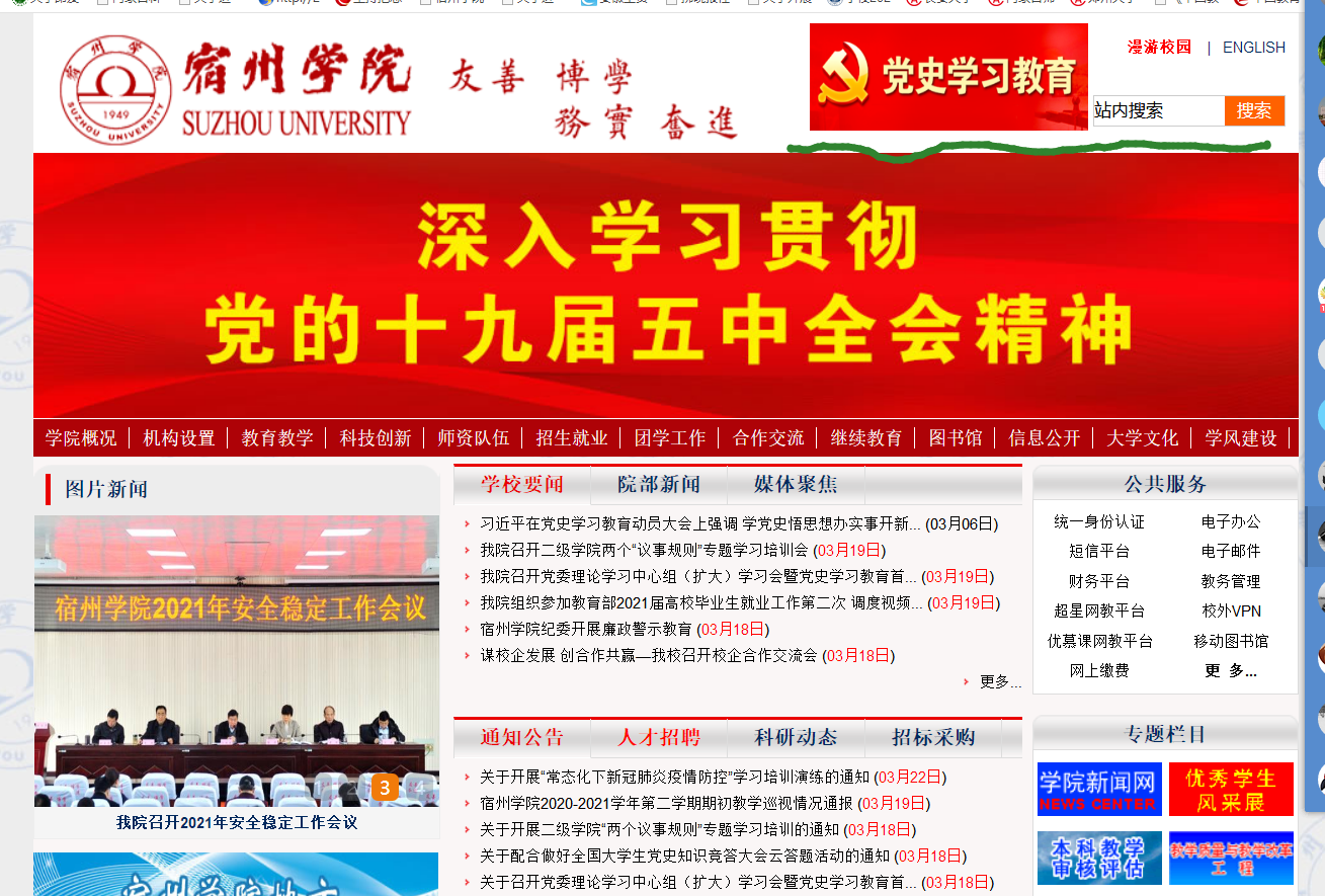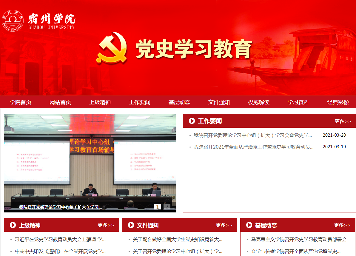 本专题网由党委宣传部主办,设有“上级精神”“工作要闻”“基层动态”“文件通知”“权威解读”“学习资料”“经典影像”等专栏。其中,“上级精神”主要传达中央和省委及上级部门有关文件、会议精神与工作安排要求;“工作要闻”旨在实时报道大赢家体育党史学习教育的整体情况和重要活动进展;“基层动态”则汇聚各二级单位开展党史学习教育的动态情况、工作举措、经验成果等;“学习资料”则在为全院师生提供丰富的党史学习材料;“文件通知”则及时发布院印发的大赢家体育党史学习教育的相关通知;“权威解读”则转载新华网、人民日报等国家级媒体的重要评论、解读;“经典影像”则提供视频学习资料。广大师生可以在校园网首页右上角直接点击党史学习教育(http://xcb.ahszu.edu.cn/dsxxjy.htm)浏览。