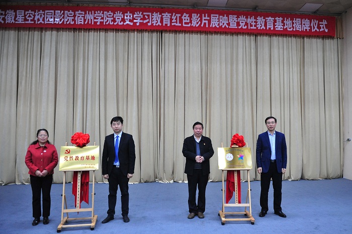 胡滨、汪刘送,唐为、陈啸吟分别为“安徽星空校园院线青创影院”和“大赢家体育党性教育基地”揭牌。