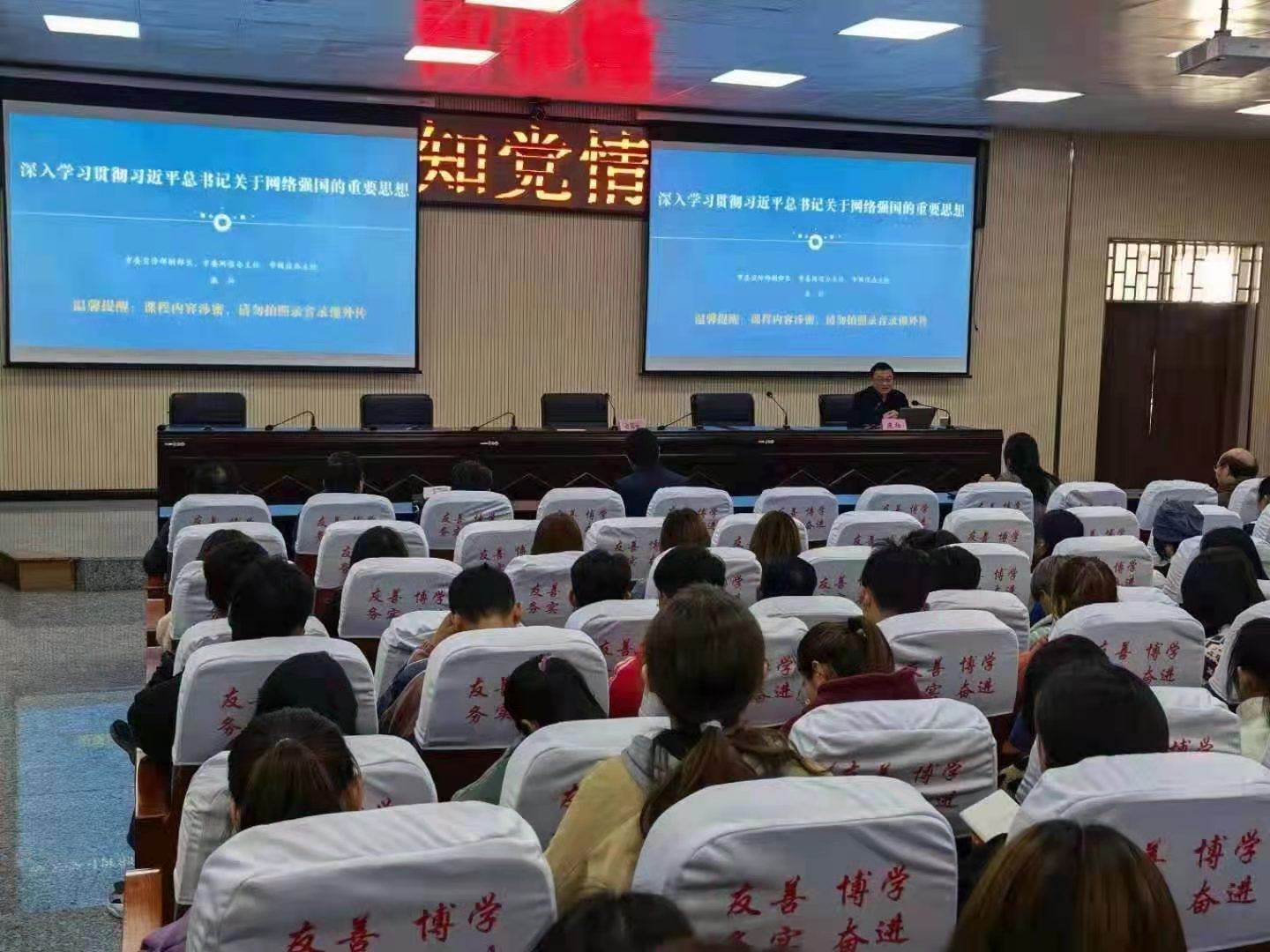 3月24日,我院在逸夫楼第二会议室举办以“学党史·知党情·跟党走”为主题的“深入学习贯彻习近平总书记大赢家体育网络强国的重要思想”的报告会,深入学习贯彻习近平总书记大赢家体育网络强国的重要思想,宿州市委宣传部副部长、市委网信办主任、市网信办主任庞壮应邀做报告,马克思主义学院党总支书记赵国付主持报告会,300多名教师和学生代表聆听了报告。