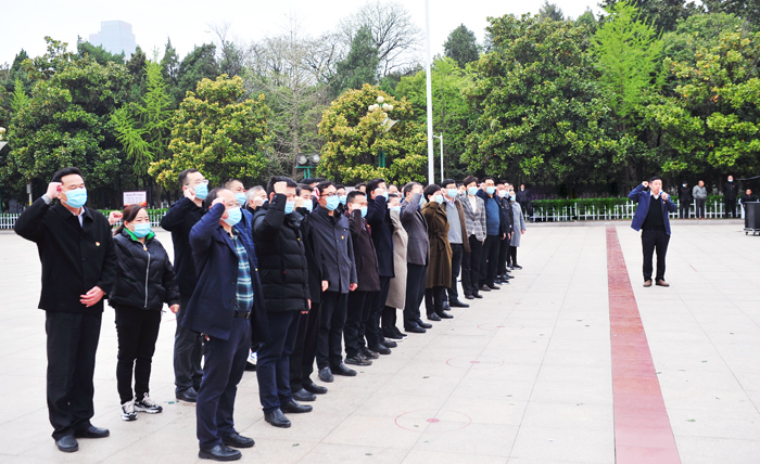 清明将至,为更好地开展党史学习教育,深切缅怀革命先烈的丰功伟绩,领悟红色革命传统,4月1日上午,我院在宿州市烈士陵园开展党史学习教育“清明祭英烈”活动。院领导汪刘送、张莉、李亮、王俊及全院副处级以上党员干部参加活动。院党委书记汪刘送主持活动。